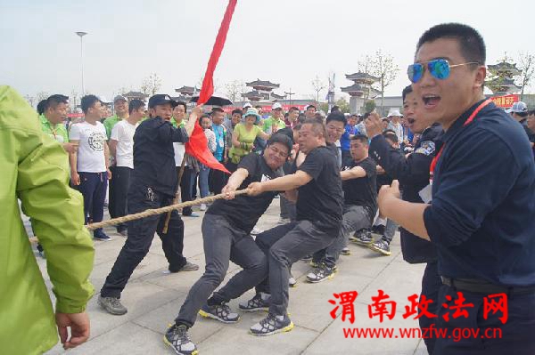 此次运动会是蒲城县委、县政府组织的第二届全县干部职工运动会,来自全县70多个部门的2千余名运动员参加了比赛,蒲城县公安局抓住这一展示公安民警良好形象的机会,由政治处牵头负责,从全局筛选了36名民警参加了拔河、乒乓球、6×100米接力、摸石过河、齐心协力、集体大绳六个项目的比赛。为确保取得良好的比赛成绩,在运动会举办的前期,公安局党委高度重视,专门指定了四名局领导负责对参赛民警进行了为期两周的集中训练。全体参赛民警都能克服工作任务重、训练时间短的困难,统筹处理好工训矛盾,全力投入到训练之中,保证了良好的训练效果。特别是部分民警因连续训练,双腿出现肿胀、擦伤,但仍能坚持投入训练,态度积极,精神可嘉。