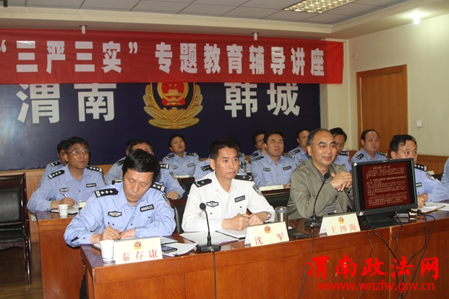 这是继群众路线教育实践活动之后韩城市公安局再次邀请王四海教授为广大民警进行理论辅导,王教授以“治党治吏的要招”为题,从“三严三实”的内容、怎样认识“三严三实”、怎样做到“三严三实”三个方面进行了深入浅出的解读,讲课中不时穿插一些历史资料、现实案例、典型事例,使整个理论辅导更加生动明晰,王教授精彩的授课为民警开阔了视野,提高了党性修养,进一步强化了人民警察核心价值观,赢得了大家的一致认可和好评。