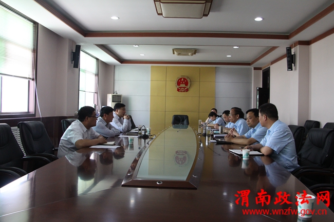 在随后的座谈中,杨书记对华县法院目前存在的人员短缺、涉案财物处置、司法规范化建设等问题与该院全体领导班子成员进行了亲切交谈。