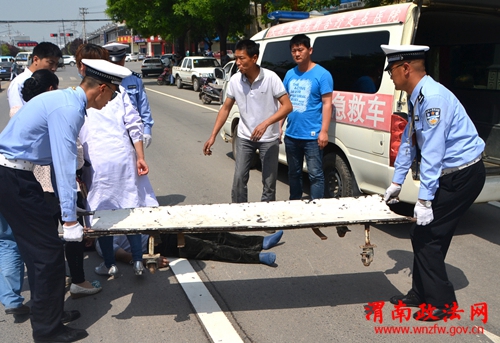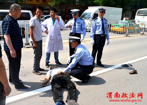 渭南政法网(特约通讯员刘海滨 韩丽娜 惠锐敏)5月5日上午10时20分,大荔县城冯翊路西段发生一起交通事故,一辆小轿车和一电动自行车相撞,骑电动车男子被撞伤倒地。大荔县公安局交警大队民警王大勇和郭帅路过看到后迅速上前,一边维护交通秩序,一边拔打“120”急救电话。“120”救护车赶到后,他俩又协助将伤员抬上车及时送往医院,为抢救生命赢得了宝贵时间,受到群众称赞。