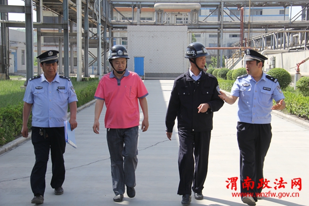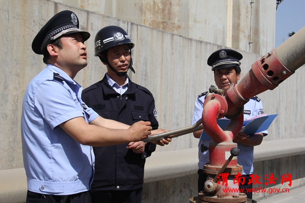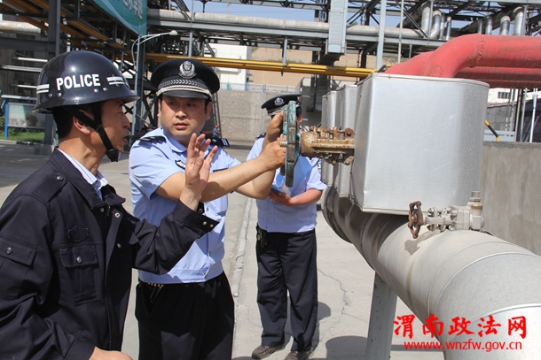 渭南政法网(特约通讯员 刘苍锋)5月13日,陕西省富平县公安局梅家坪派出所民警在陕西陕焦化工有限公司进行消防安全检查。为切实做好夏季防火工作,坚决遏制火灾事故的发生,富平县公安局积极行动,民警深入辖区企业、加油站、宾馆饭店、人员密集场所等重点部位进行消防安全大检查,全力确保场所消防安全和人民群众生命财产安全。
