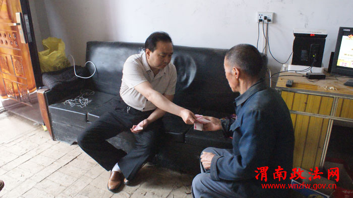 渭南政法网(特约通讯员问晓明)6月3日上午,白水法院党组副书记、副院长赵斌龙带领党总支、办公室负责人来到包联的北塬镇王庄村,看望慰问魏振兴等四名贫困残疾人和留守儿童,代表法院给他们送去温暖和问候。