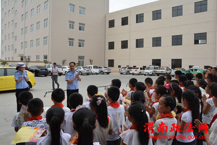 渭南政法网(特约通讯员刘彬 曹飞跃)为了进一步提高中小学生道路交通安全意识和保护能力,2015年6月12日下午,华县公安局交警大队深入毓秀小学,开展了以“小眼看交通”为主题的道路交通安全宣传教育和警营开放日活动。