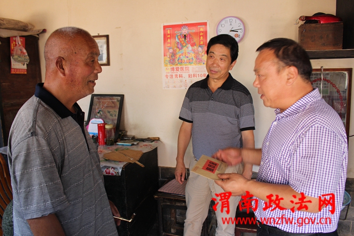 渭南政法网(特约通讯员张娟)七·一前夕,按照合阳县委统一安排,受合阳县委书记李县平委托,合阳县人大副主任贾培义、合阳法院院长饶秦军深入基层慰问生活困难党员。