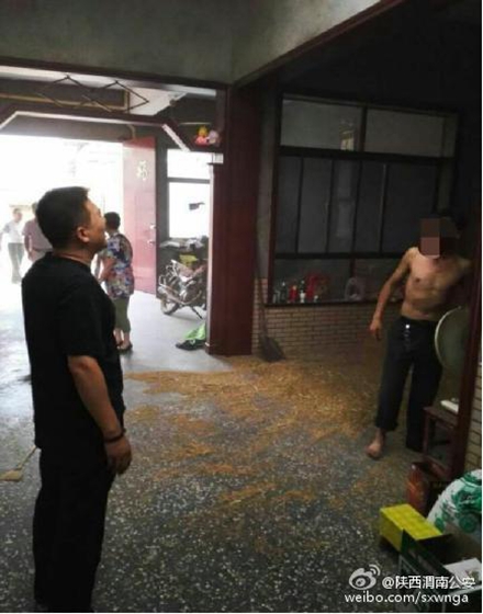 渭南向阳派出所民警正在查看醉酒男子情况