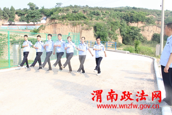 训练当日,法警局同志全副武装,开展野外专项技能训练。到达目的地后,按预定的方案进行了3公里越野、擒敌拳、爬山、俯卧撑、队列步伐等专业技能训练。虽然头顶烈日,但大家都士气高涨,不怕累不叫苦,在荒野上洒汗挥拳,荒野上空回荡着“嘿哈”的训练声。