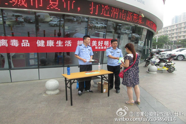 【6.26禁毒宣传】6月26日,渭南临渭解放所民警走上街头开展以“远离毒品 健康生活 拥抱美好明天”为主题的禁毒宣传教育活动,活动中,民警向过往群众发放宣传材料、讲解禁毒知识,使群众认识到毒品对社会、家庭和个人的危害,增强群众对毒 品防范意识。