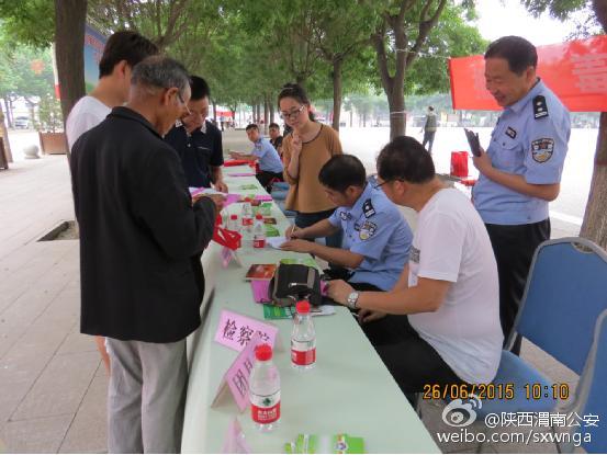 6月26日,渭南临渭解放所民警走上街头开展以“远离毒品 健康生活 拥抱美好明天”为主题的禁毒宣传教育活动。