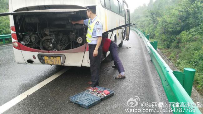 高速交警蜀黍在巡逻管控发现客车故障,帮助驾驶员朋友维修,警民一条心!暖人心!
