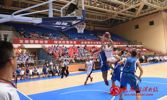 【渭南市公安机关“平安杯”篮球比赛体育场开赛】26日,渭南市公安机关“平安杯”篮球比赛在渭南体育场隆重开幕,陕西省 篮球协会主席王立彬,陕西省公安厅前卫体协秘书长高玉江,市体育局局长张晓民,市公安局局长王勤智及党委班子成员,来自各县(市、区)公安局、分局,市武 警、消防、交警支队的17支参赛队伍200余名民警共同参与“平安杯”篮球比赛。比赛时间从6月26日至7月1日,为期六天,共进行40场比赛,赛制采用 分组循环赛制和交叉淘汰赛制相结合,三人制篮球裁判,冠军于7月1日下午决赛产生。