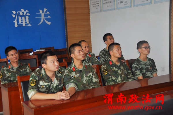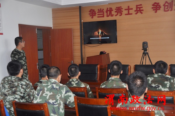 潼关消防官兵正在观看安全教育警示片活动