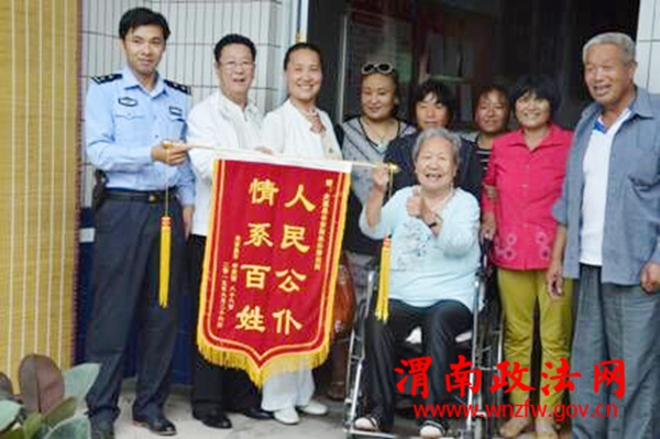 “人民公仆,情系百姓”。锦旗上那八个熠熠生辉的大字,折射在民警的脸上,滋润在老人和两个侄女以及全家人的心里!