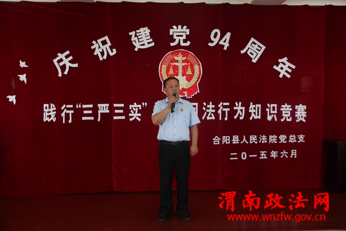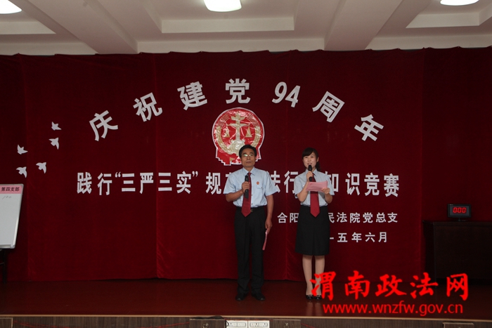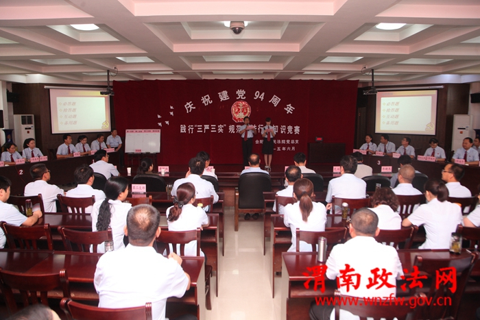 渭南政法网(特约通讯员杨国祥 马力驰)为了庆祝中国共产党成立94周年,深入推进“三严三实”专题教育活动,积极推动司法规范化建设,进一步坚定广大法官的理想信念。七·一前夕6月30日下午,合阳法院党总支举行了“庆祝建党94周年暨践行三严三实、规范司法行为”知识竞赛活动。