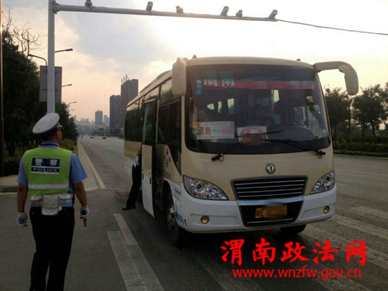 临渭交警大队保丰中队民警对辖区客车进行检查