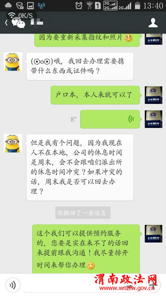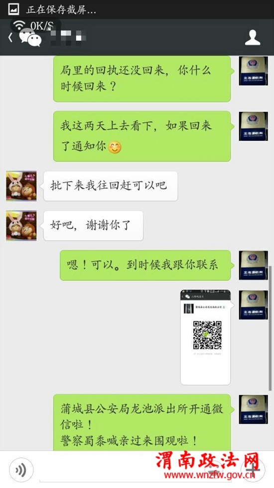 蒲城龙池派出所户籍民警开通龙池派出所警务微信