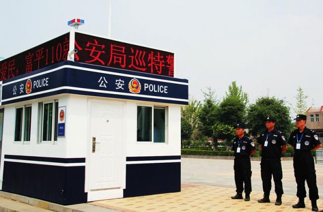 【富平县城有了首座警务站】近日,渭南市公安局首座警务站在富平县城区通过综合验收并投入使用。该警务站建筑面积约18平方米,自重10吨,分为警务站和银行ATM机一体两部分,外墙采用钢构结构,具有防火、防腐蚀、防盗等功能,外观标识符合公安部外观统一标识,配有三面LED大屏,四个高清摄像探头及爆闪警灯标志。