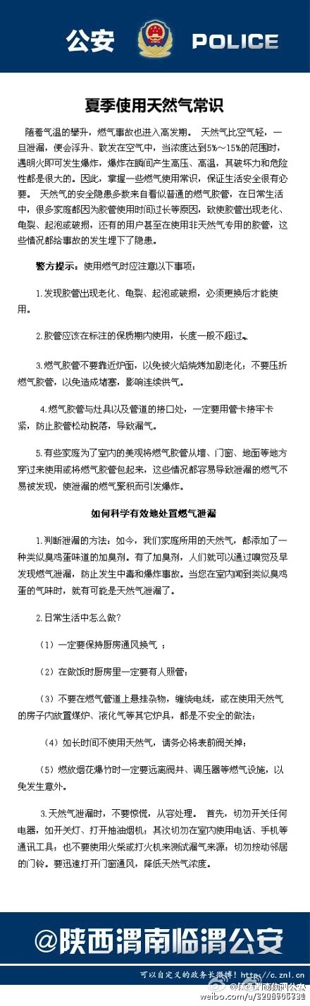 夏季使用天然气常识。