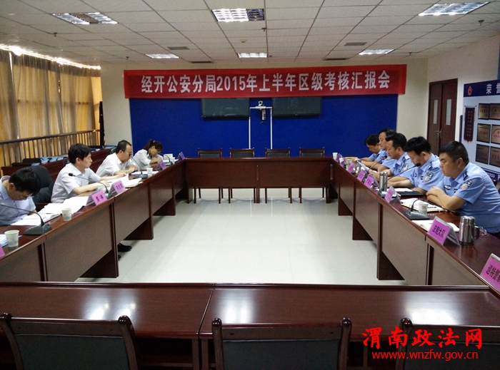 渭南政法网(特约通讯员 刘孟德)7月15日下午,经开分局召开了2015年上半年区级考核汇报会,汇报上半年公安分局半年工作情况,经开区管委会主任韦红革率考核组成员一行五人听取了汇报,查看了工作资料。