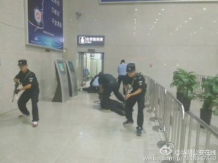 【华阴特警联合开展反恐演练】近日,华阴市公安局巡特警大队特警中队与高铁北站刑警队、北站派出所联合开展防恐演练。演练中,由特警、高铁北站刑警队及北 站派出所民警组成的处置小分队迅速出击,利用警棍、盾牌、钢叉等警械和武器及时有效地围困“投掷燃烧弹的暴恐分子”,并成功将其制服。