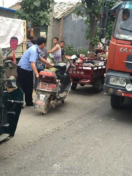 【疏导交通】近期是黄花菜成熟的时节。每天下午,合阳黑池镇周边的群众把一车车的黄花菜运送到黑池镇街道附近的固定地点进行交易,导致沿途的道路被围个水泄不通。为防止争道抢行引发的交通事故和交通拥堵,合阳公安黑池派出所民警采取固定执勤和巡逻执勤相结合的方式疏导交通,确保群众顺利通行。