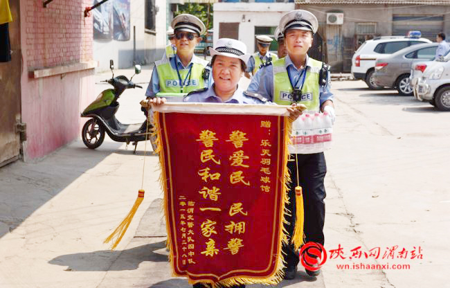 临渭区交警大队四中队送锦旗表谢意。记者 白新艳 赵雷 摄