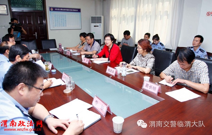 渭南政法网(临交宣)8月5日上午,市委常委、宣传部部长潘洁在市委宣传部副部长、外宣办主任杨建秦,市公安局副局长高中仓,交警支队政委智建峰,区委常委、宣传部部长柴芳侠等领导陪同下,深入基层一线临渭交警大队进行视察调研。