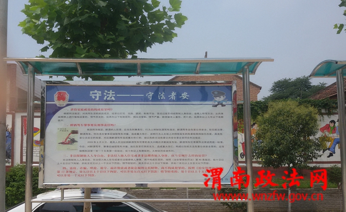 渭南政法网(特约通讯员 杨俊丽 王新荣 李杰)今年是依法治国的开局之年,临渭区司法局年初提出了进一步推进法治文化建设的思路,故市镇东屯村结合美丽乡村建设,在抓好“村新、景美、业兴、人和”的同时,结合实际想办法、出实招,大力发展法治文化,把法治元素寓于美丽乡村建设之中。