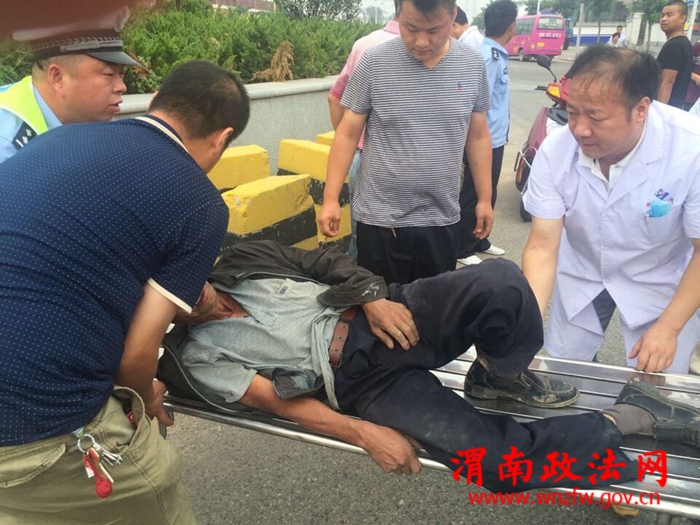 9时43分,林峰120救护车赶到事故现场,民警配合医务人员对受伤的老人施救,对事故现场滞留车辆进行疏导,确保交通畅通、人员安全。