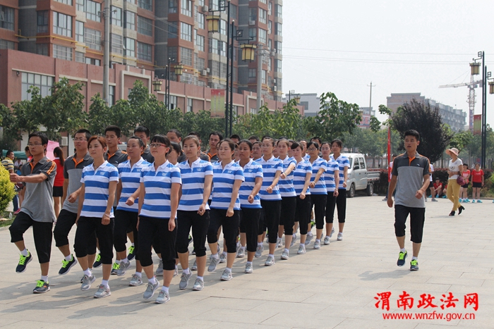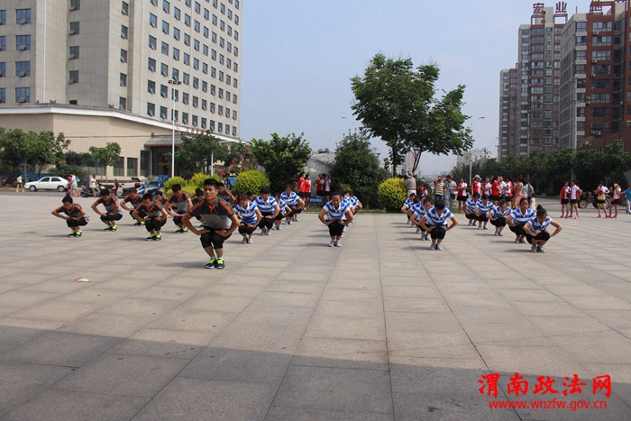 渭南政法网(特约通讯员 曹静)为了全面贯彻落实《全民健身条例》活跃干警的文体生活。近日,合阳法院组织干警积极参加全县干部职工运动会,大力推进合阳法院全民健身活动。8月13日上午,合阳法院工间操代表队在天合园参加了运动会工间操比赛,本次比赛旨在锻炼身体,丰富干警文化生活,培养干警之间的协作精神和集体荣誉感。