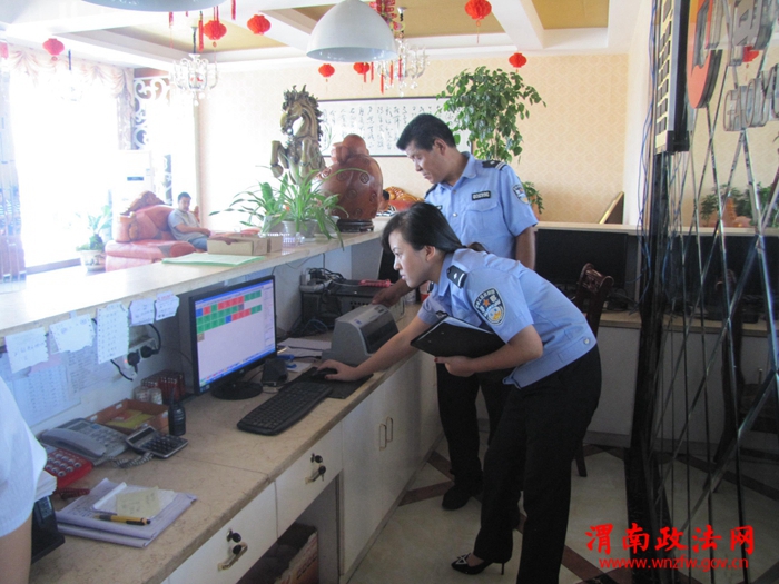 渭南政法网(特约通讯员 吝敏)为了进一步加强对辖区宾馆的监管,及时消除各种安全隐患,净化社会治安环境。近日,蒲城高阳派出所组织民警对辖区内的宾馆、招待所住宿人员的登记情况做了一次全面检查,并对旅馆内消防设施进行检查。该所组织民警检查主要是看旅馆实名登记是否存在“无证住宿”、“一人登记、他人住宿”、“一人登记、多人住宿”情况,是否存在涉黄、涉毒、涉赌等违法行为的情况,消防设施是否存在过期无法正常使用或者工作人员不会使用的情况。