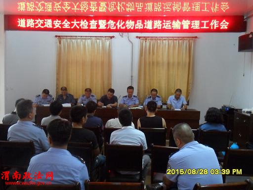 渭南政法网(华阴交警大队讯)为切实做好抗战胜利70周年庆典活动期间道路交通安全管理工作,贯彻落实中、省、市各级关于安全大检查的相关会议精神,深刻吸取近期重特大道路交通事故经验教训。8月28日下午,华阴交警大队特勤中队积极与运政部门取得联系,召集辖区危化企业负责人,在华阴市交通运输管理站三楼会议室召开道路交通安全大检查暨危化物品道路运输管理安全警示会。会议由交警大队秩序管理中队中队长贺鹏主持召开,市安监局副局长宋勇斌、交警大队副大队长任晓峰、交通运输管理站工会主席张新刚出席会议并做了重要讲话。