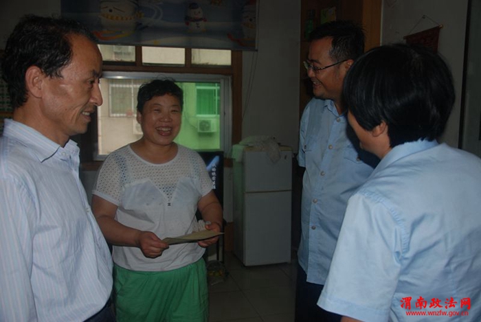 渭南政法网(特约通讯员 周东峰 高增恩)为了帮助贫困群众解决实际困难,改善基本生活条件,9月9日,临渭法院党组一行数人冒雨来到临渭区解放街道办事处,走访慰问辖区困难群众,并送去慰问金。