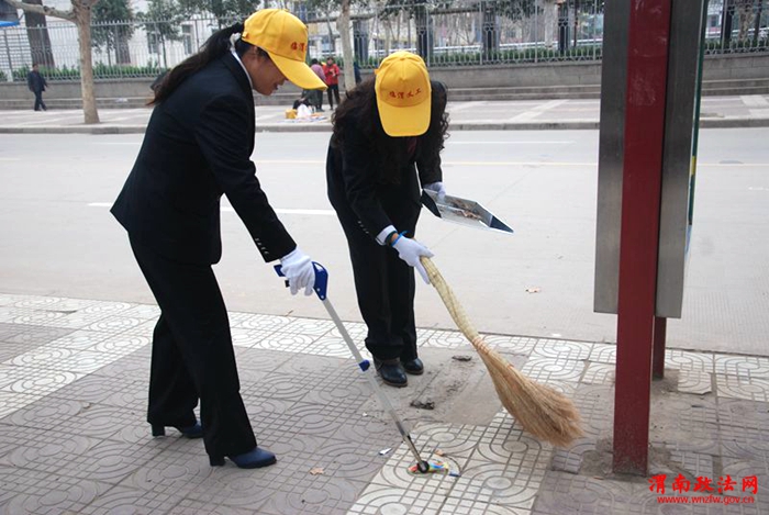 自全民清洁日活动开展以来,临渭法院党组高度重视,及时动员干警积极主动参与,并将此项工作列入党员考核评价机制中,充分调动了广大党员参与志愿者服务工作的积极性。活动中,大家均能按照活动指挥部的统一要求,佩戴义工标识,自带劳动工具,按时到达指定责任路段开展义务劳动。并在活动中,体现了人员到位早,活动时间长,不怕脏不嫌累的精神风貌,做到了认真清扫人行道卫生、捡拾绿化带杂物、擦洗沿街公共措施等,扎实细致,高标准完成劳动任务,有效带动了全区全民大清洁日活动的开展。
