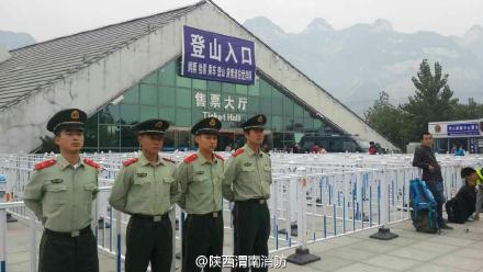 【黄金周确保景区安全】今天是十一黄金周的第五天,渭南华山景区迎来了大量游客,面对剧增的客流量,渭南消防增派多个执勤小组,不定时对游客中心、索道、玉泉院、西岳庙内外的各个角落进行消防设施和疏散通道检查,确保景区安全。