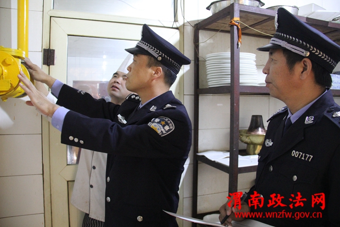 渭南政法网(特约通讯员 刘苍锋)为切实加强餐饮行业燃气安全使用,有效遏制燃气安全事故的发生,富平县公安局组织消防民警对餐饮 经营单位、宾馆饭店、学校食堂等液化气重点使用场所进行安全大检查,并对经营户进行公共安全教育,进一步规范强化了液化气的正确使用方法和安全防范意识。