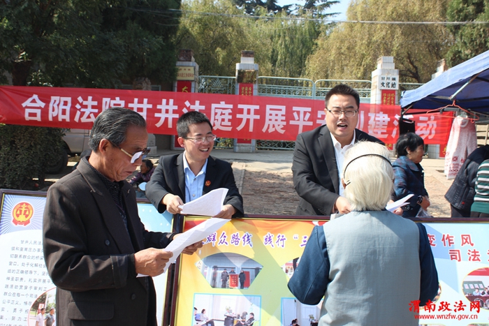 渭南政法网(特约通讯员 苗建丽)为了深入推进平安创建活动,提高辖区群众对平安创建的知晓率、满意率、参与率。10月14合阳法院甘井法庭在辖区甘井镇中心街道宣传平安创建工作,积极营造平安建设人人参与的良好氛围。