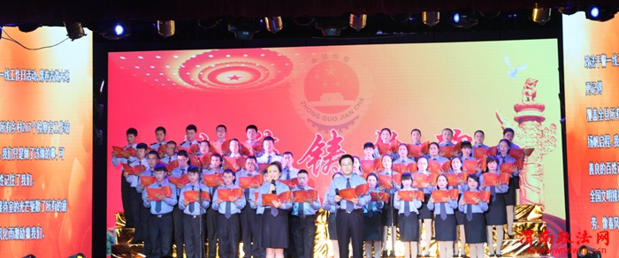 更有澄城县检察院闫永江检察长亲笔赋诗的诗朗诵《澄城检察礼赞》以及澄城县反贪局局长雷俊民谱写的大合唱歌曲《古徵清风》,使汇报演出达到了高潮。