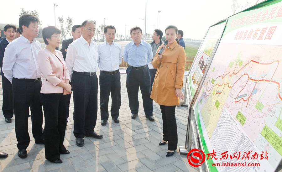 国家体育总局局长刘鹏带领督查组在渭南市委书记陆治原、渭南市副市长高洁、市体育局局长张晓民等领导陪同下,来到渭南市渭河健身长廊了解800里秦川渭河沿岸全民健身长廊规划以及发展现状。 记者 赵雷摄