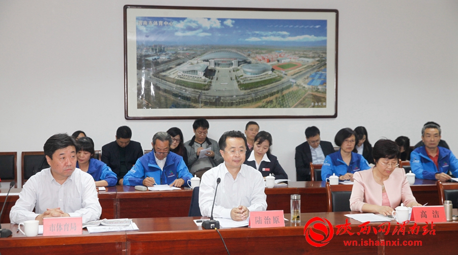 渭南市体育行业督察座谈会在渭南市体育中心召开,陆治原主持座谈会。 记者 赵雷摄