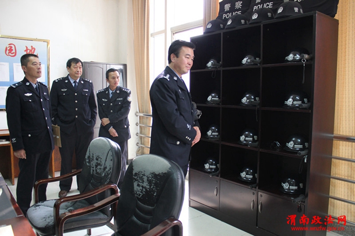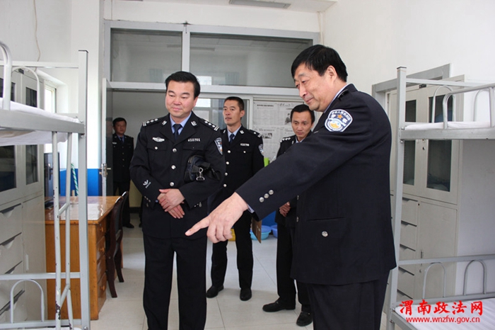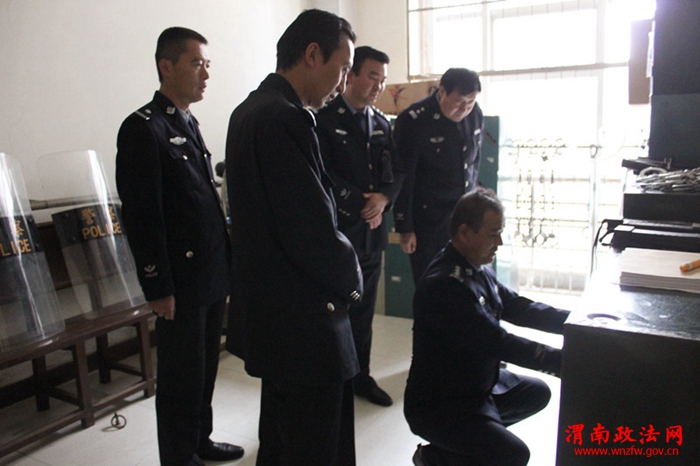 考核验收组成员在党组成员、副院长张平安,法警大队队长安军等的陪同下首先对安检区域,羁押室,枪弹库,值班室以及三区分离的实施进行了检查,随后,考核验收组成员与蒲城法院法警队全体干警进行了座谈交流。