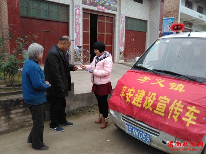 渭南政法网(特约通讯员 张旭阳)11月中旬,孝义镇政府为了将平安建设推向纵深,全面落实细化综治工作措施,深化“平安孝义” 建设、提升公众安全感,增强村民平安意识,为群众提供贴心服务,镇政府在制作“平安手提袋”、宣传页、平安宣传横幅、墙体标语、另外在每村组织红袖章巡逻 等一系列措施后,又推出为辖区群众印制了7000余张“便民联系卡”,保证每户一张,由镇包村干部和村干部入户为群众发放。