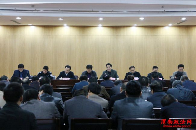 【渭南市政法委召开“同心共建平安渭南”座谈会】11月17日,渭南市政法委召开“同心共建平安渭南”座谈会。市委政法委副书记、维稳办主任林跃出 席,市委政法委副书记、610办主任王宏运主持,市委政法委副书记、综治办主任贾重新对平安建设工作进行安排部署。市政法委政治部主任李永刚、各县(市、 区)综治办主任、综治成员单位、旅游景区、中省驻渭企业、城镇社区分管综治和平安建设工作相关负责人参会。在座谈会上,市综治办基层科科长相峰通报了上半 年公众安全感调查情况和当前综治以及平安建设中存在的问题,与会的企业、景区和社区代表围绕“同心共建平安渭南”主题进行交流发言。
