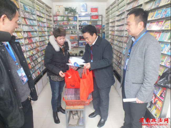 【华阴市四大班子领导入户宣传平安建设】为了营造良好的社会氛围,在全市上下掀起“平安华阴”建设的新高潮,提高群众的“两率一度”,11月18日 下午,市委书记卢发兴、市人大常委会主任段孟海、市政协主席王春生、市委常委组织部长郭文平、市委常委常务副市长刘宝琳、市委常委政法委书记李成民、市委 常委纪委书记党锋等市上四大班子主要领导,参加了在太华办启动的全市平安建设大走访活动,在检察院、法院、公安局、太华办等单位领导干部的陪同下,沿太华 路北段,进店入户向店铺经营者和顾客宣传“平安华阴” 建设。