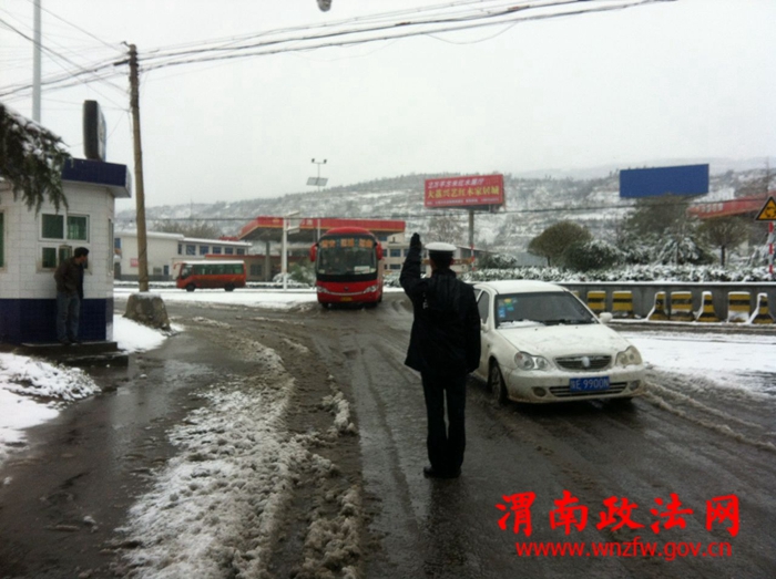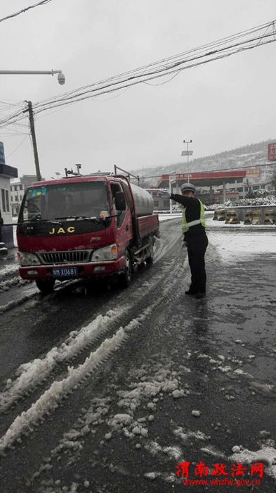 渭南政法网(特约通讯员 汤朗武 王栋炜)11月24日早8时,潼关县交警大队秦东中队中队长孙英勃、指导员梁建华立即启动恶劣天气应急预案,带领中队民警在秦东省际交通安全检查点执勤。