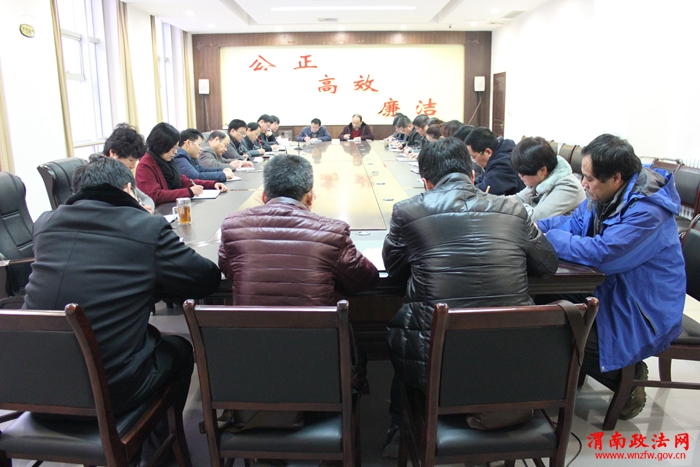 会上,王玉琦院长分别传达了省高院关于全省法院结案情况的通报,渭南中院关于全市两级法院结案情况的通报,重点强调了阎庆文院长的讲话精神,并对2015年最后一个月的审判执行等工作进行了部署和要求。强调在今年的最后一个月要继续落实审判质效提升十二项措施,坚定既定目标不动摇,合理运用全院力量,确保目标任务实现,确保案件质量提升,同时要加强保障,注意安全。