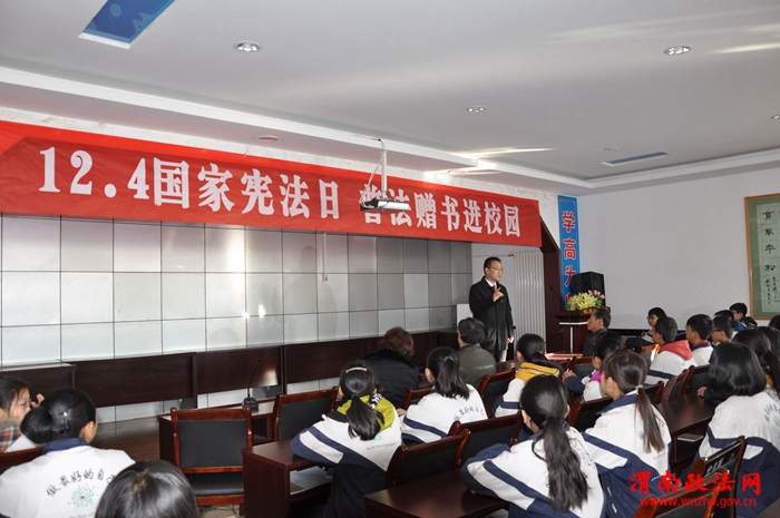 渭南政法网(特约通讯员 付蒙娇)12月4日是第二个国家宪法日,白水法院民事审判一庭的法官们在党组书记、院长古晓的带领下,来到白水县城关一中开展法制宣传活动。