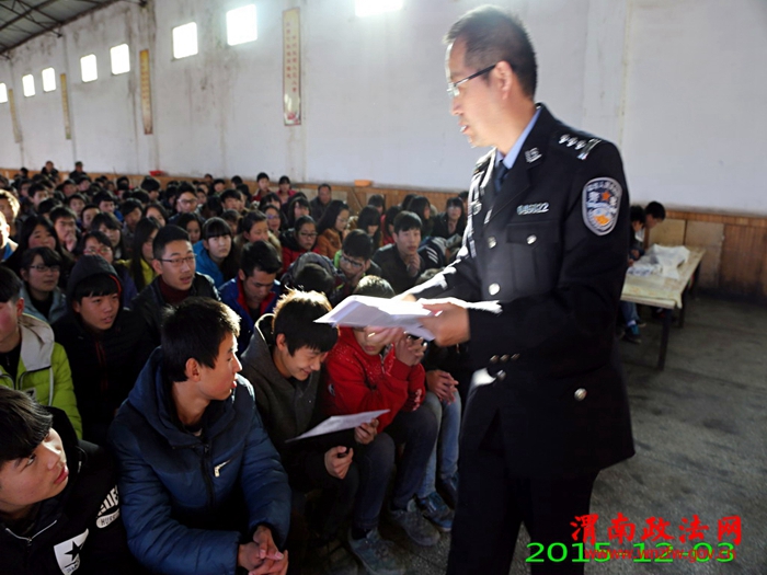 12月3日下午法制大队民警与社区民警进入龙背镇双石学校进行法制宣传,通过典型案例以案说法,发放防范宣传漫画,宣传册页等方式,为学校送上丰富的适合学生口味的法制安全知识“大餐”,不仅提高学生学习法律和安全防范知识的兴趣,而且丰富了学生课余生活,在潜移默化中增强了学生的法制意识、安全意识和自我保护意识,受教育师生500余人。