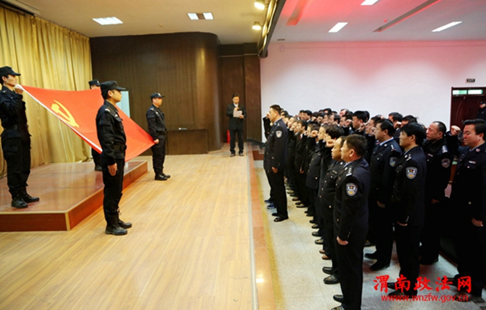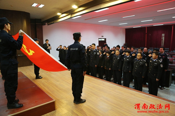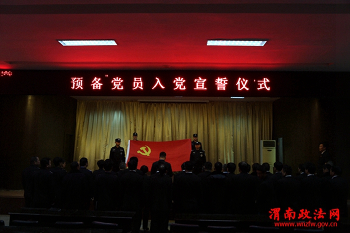 渭南政法网(特约通讯员 司红伟)“我志愿加入中国共产党,拥护党的纲领,遵守党的章程……”这是12月25日上午,市中院机关党委组织庄严的预备党员入党宣誓仪式时的场景。办公室、司行处、后勤服务中心、档案室党支部和法警支队党支部全体党员参加了此次宣誓仪式。
