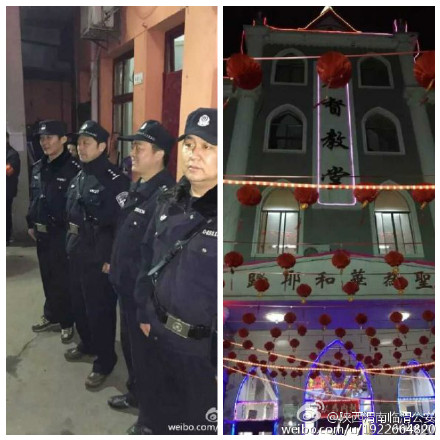临渭公安东风街派出所30余名警力在辖区三马路教堂为群众节日期间做好安保工作。