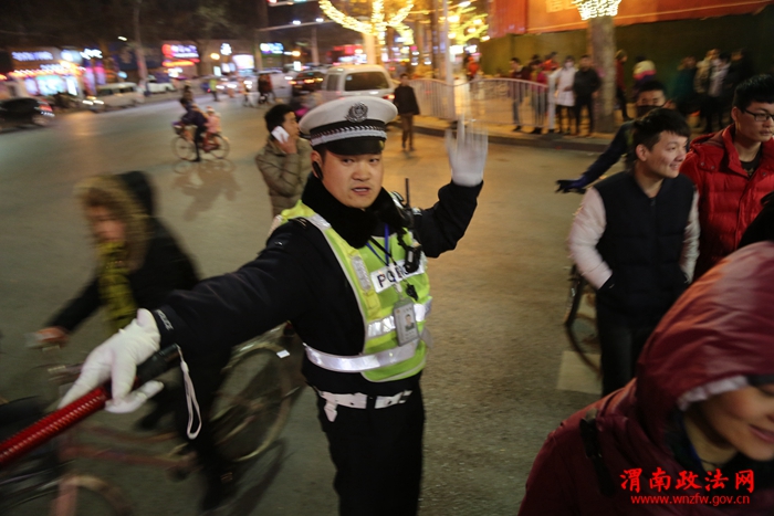 为确保平安夜城区内道路交通安全与畅通,我们临渭交警大队合理部署警力,各中队民警加班加点,在城区繁华地段进行不间断巡逻管控,防止交通拥堵和交通事故的发生。同时又在一些重点路段进行酒驾查处,提醒市民开心聚会之余不要忘记交通安全。